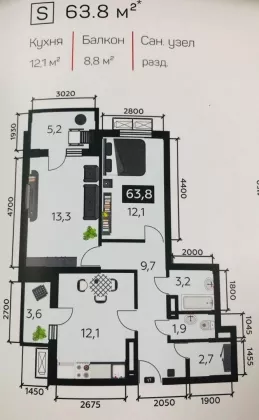 | Площадь, кв.м. | 63.8 |
